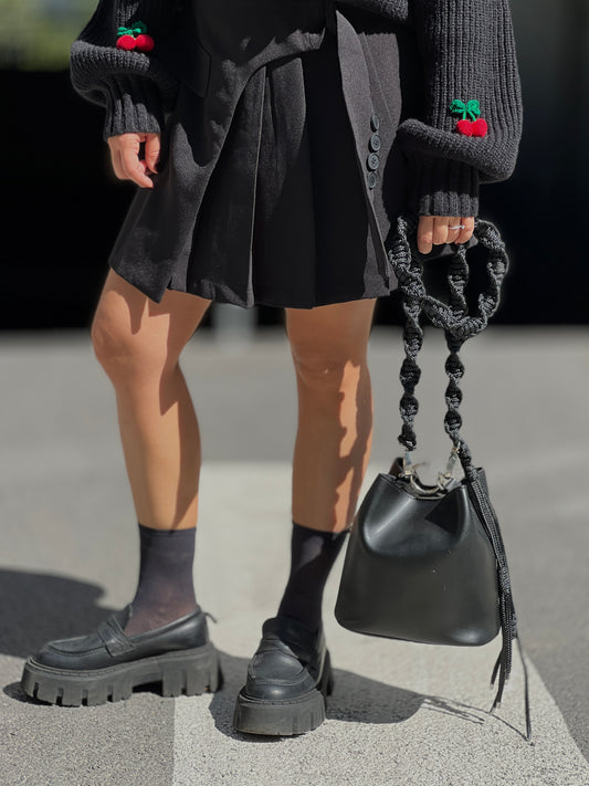 Чанта с ръчно плетена дръжка THE BUCKET / ALL BLACK