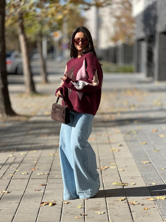 Пуловер с вълна BURGUNDY