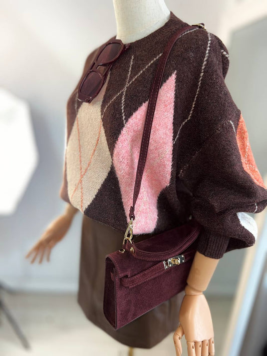 Чанта от естествен велур SELINA COFFEE 🚨* предварителна поръчка*