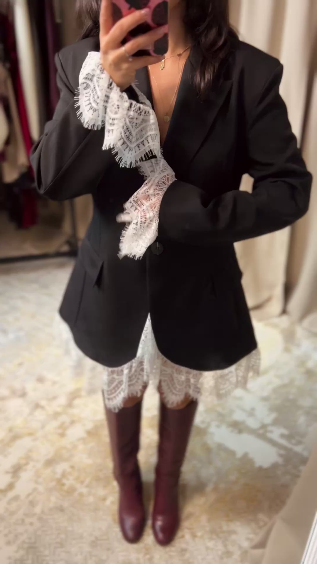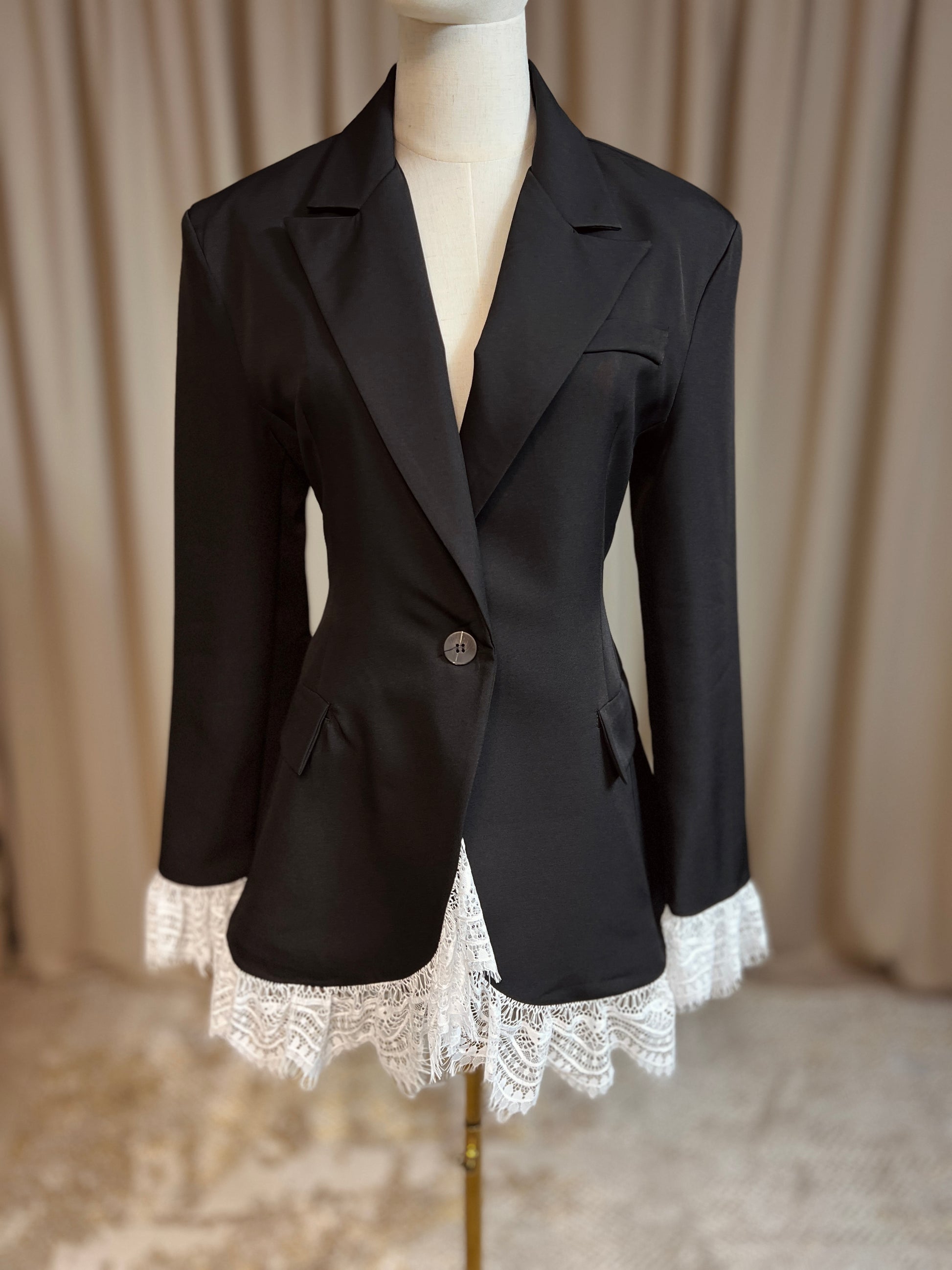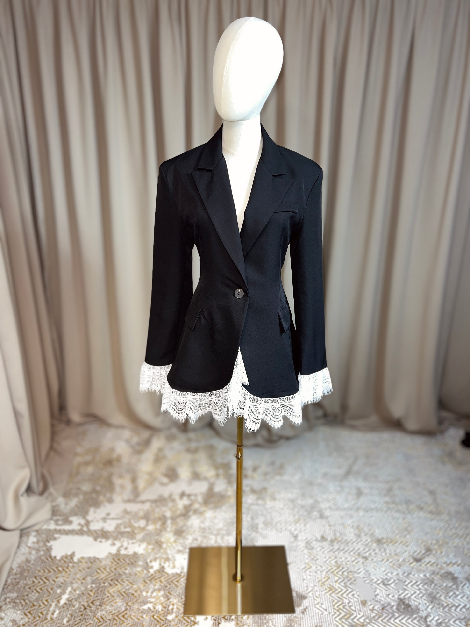 Това бижу може да е твое! Страхотен блейзър с удължена кройка, който може да се носи и като рокля. С красива дантела, която го прави повече от романтичен.