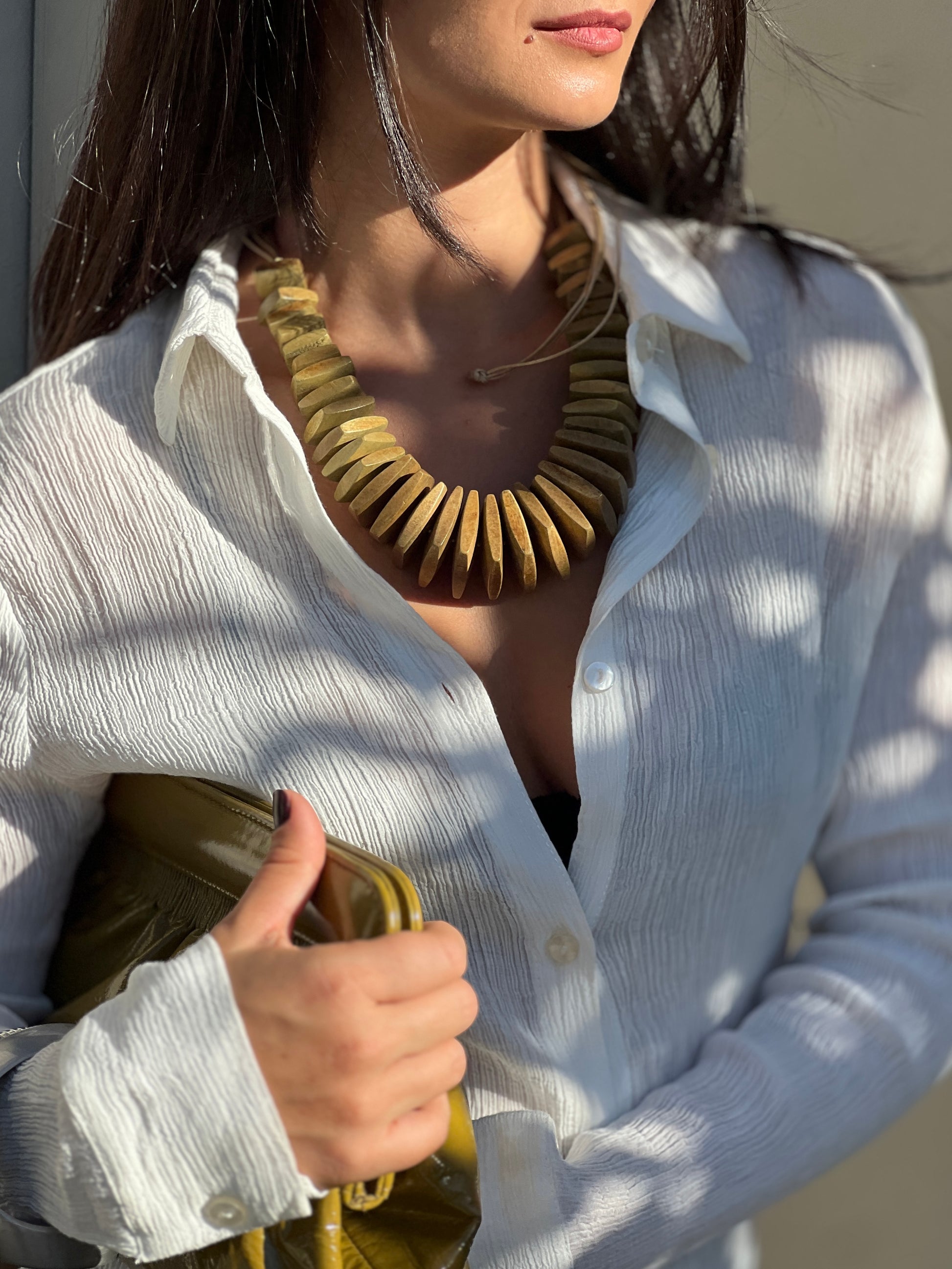 Страхотен стейтмънт гердан, с който да разнообразиш всяка бяла риза.
