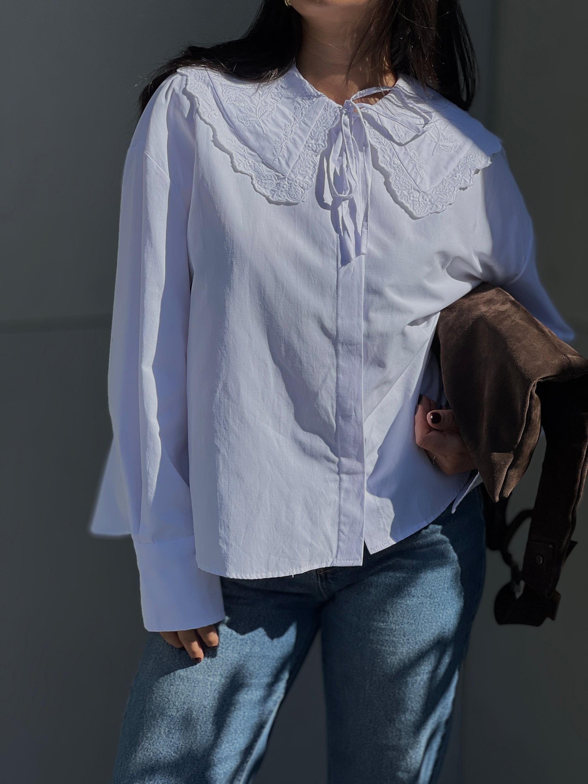 Риза, с която няма да останеш незабелязана! Красива яка и класическа кройка, естествена материя - всичко от което имаш нужда в една риза.