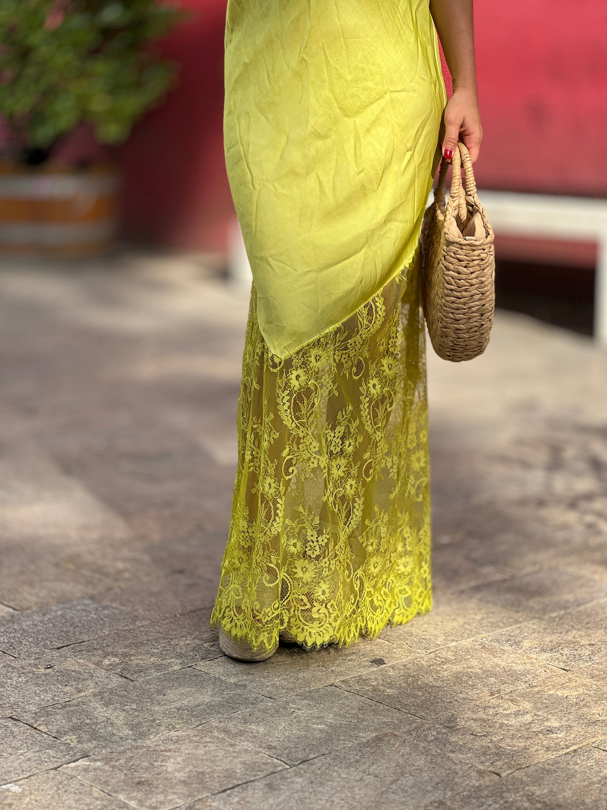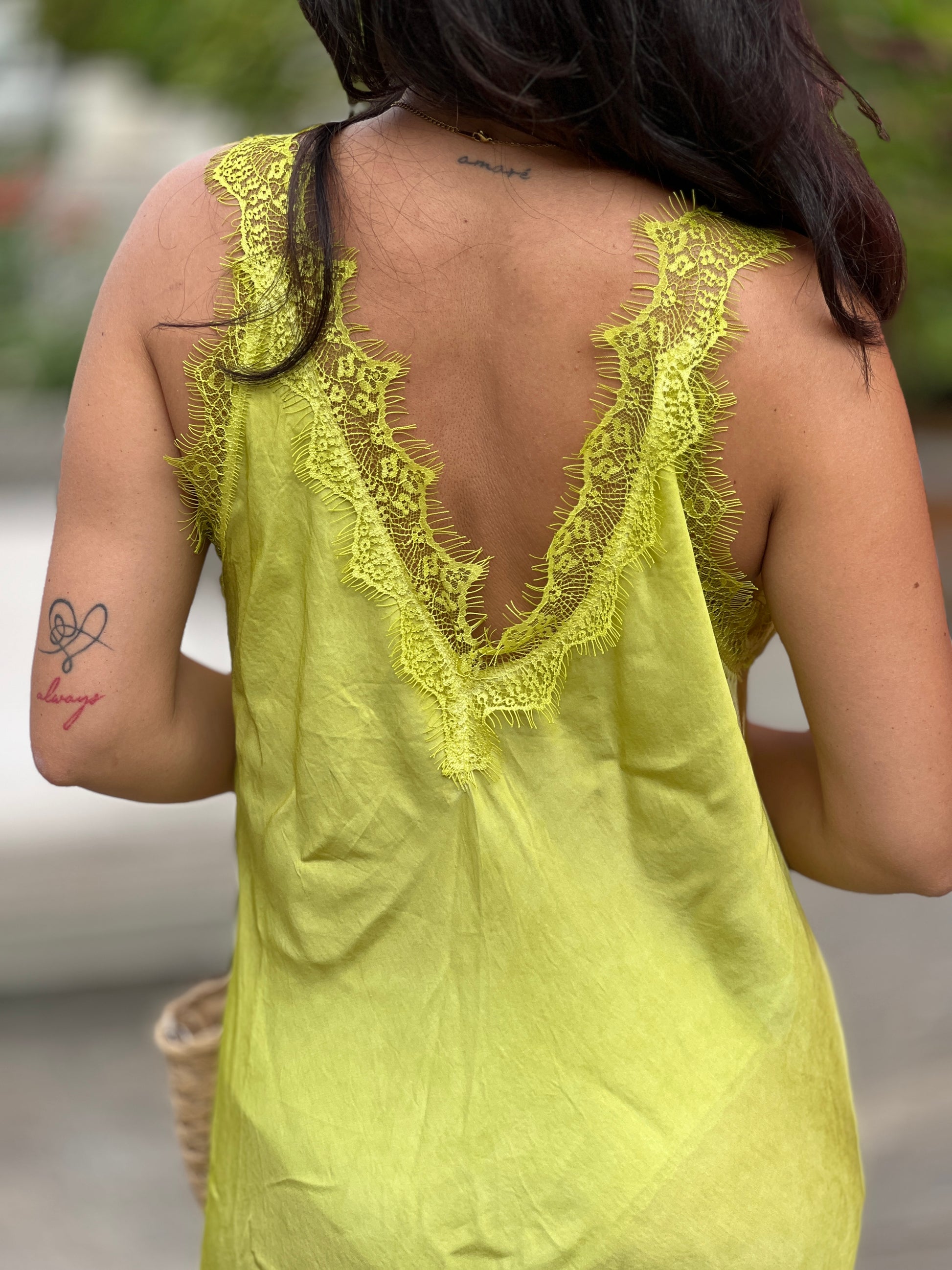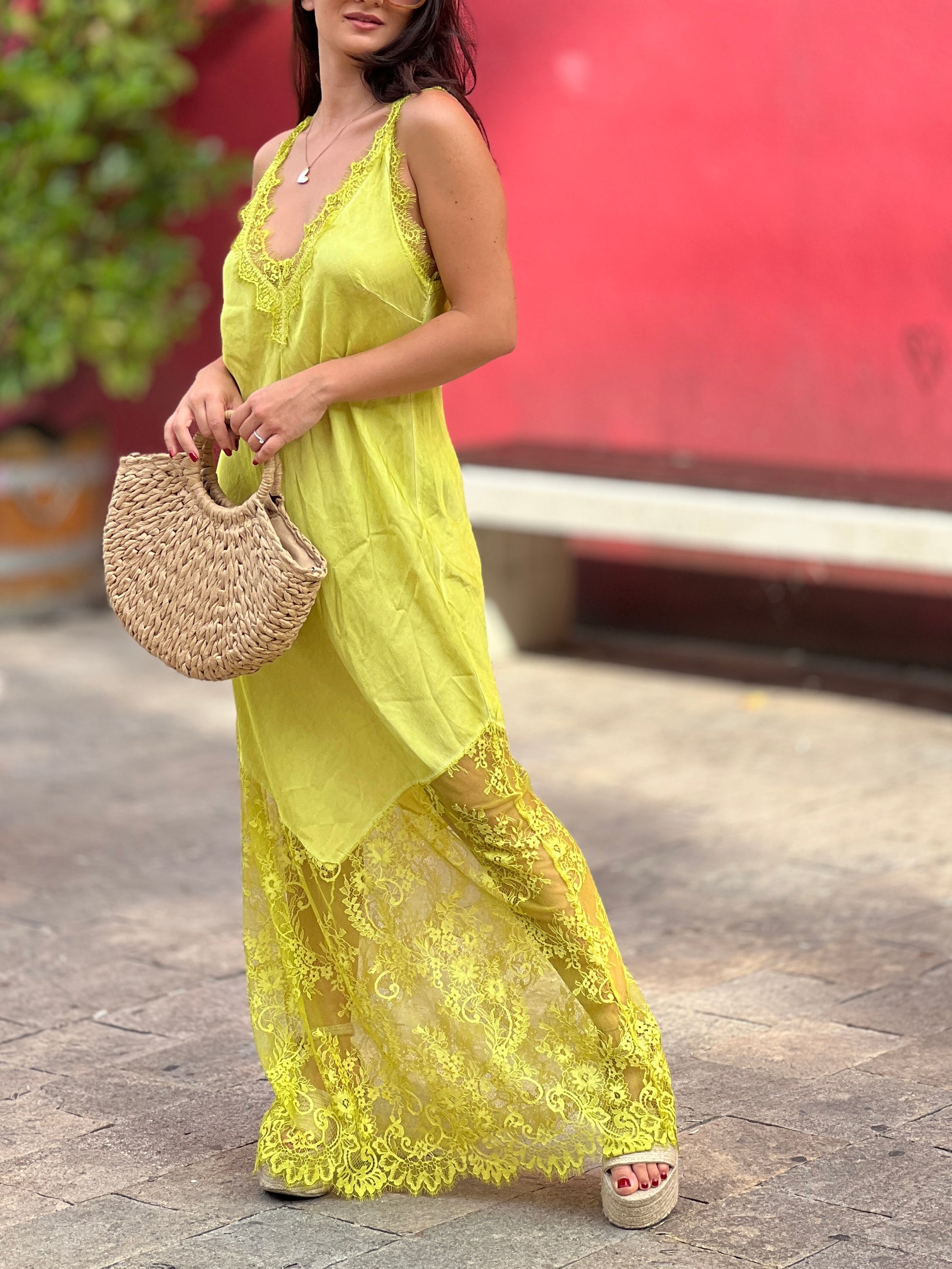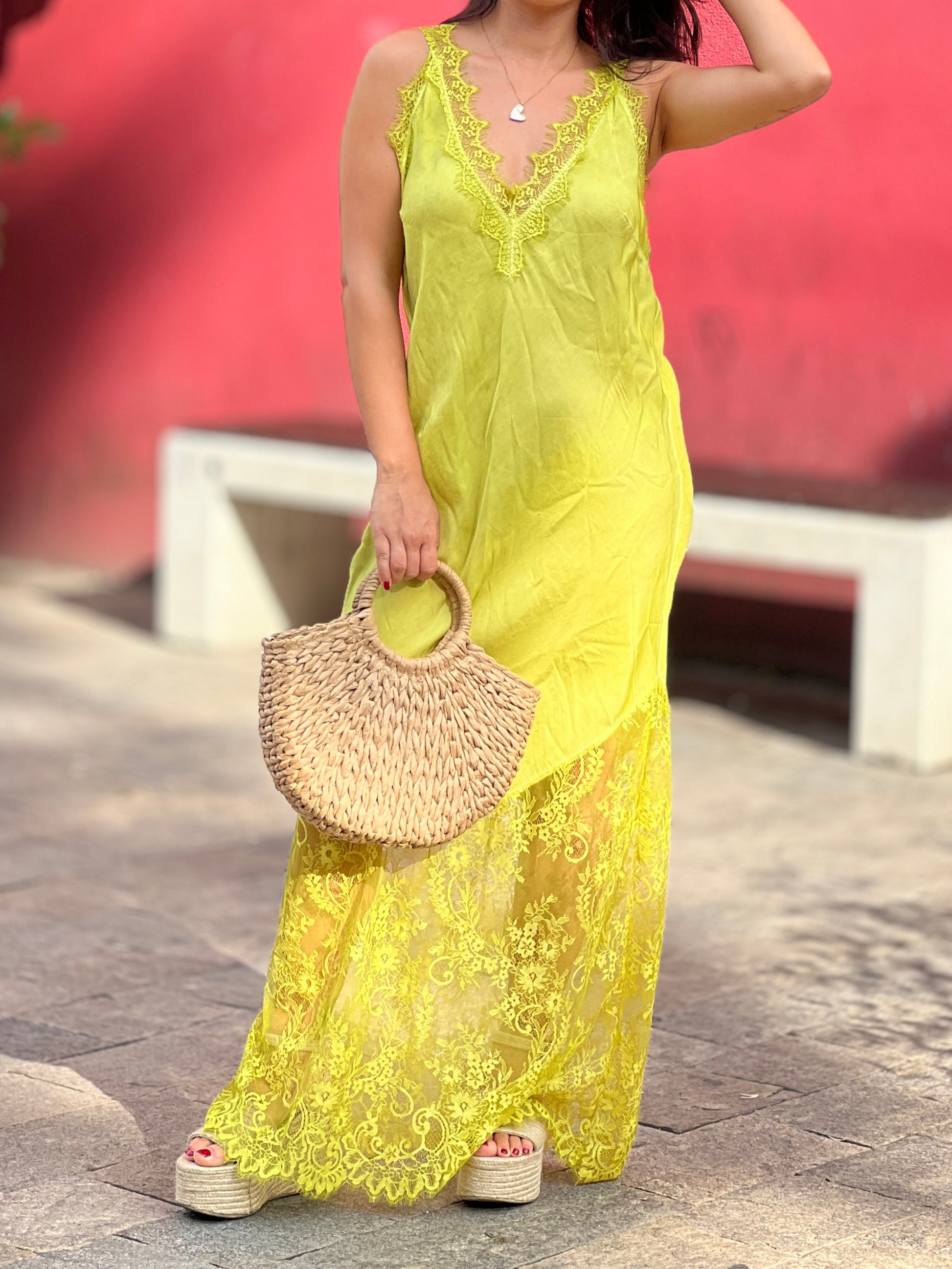 Изключително нежна и красива, от фин сатен и деликатна дантела... перфектната рокля за морето! Влюбени сме!