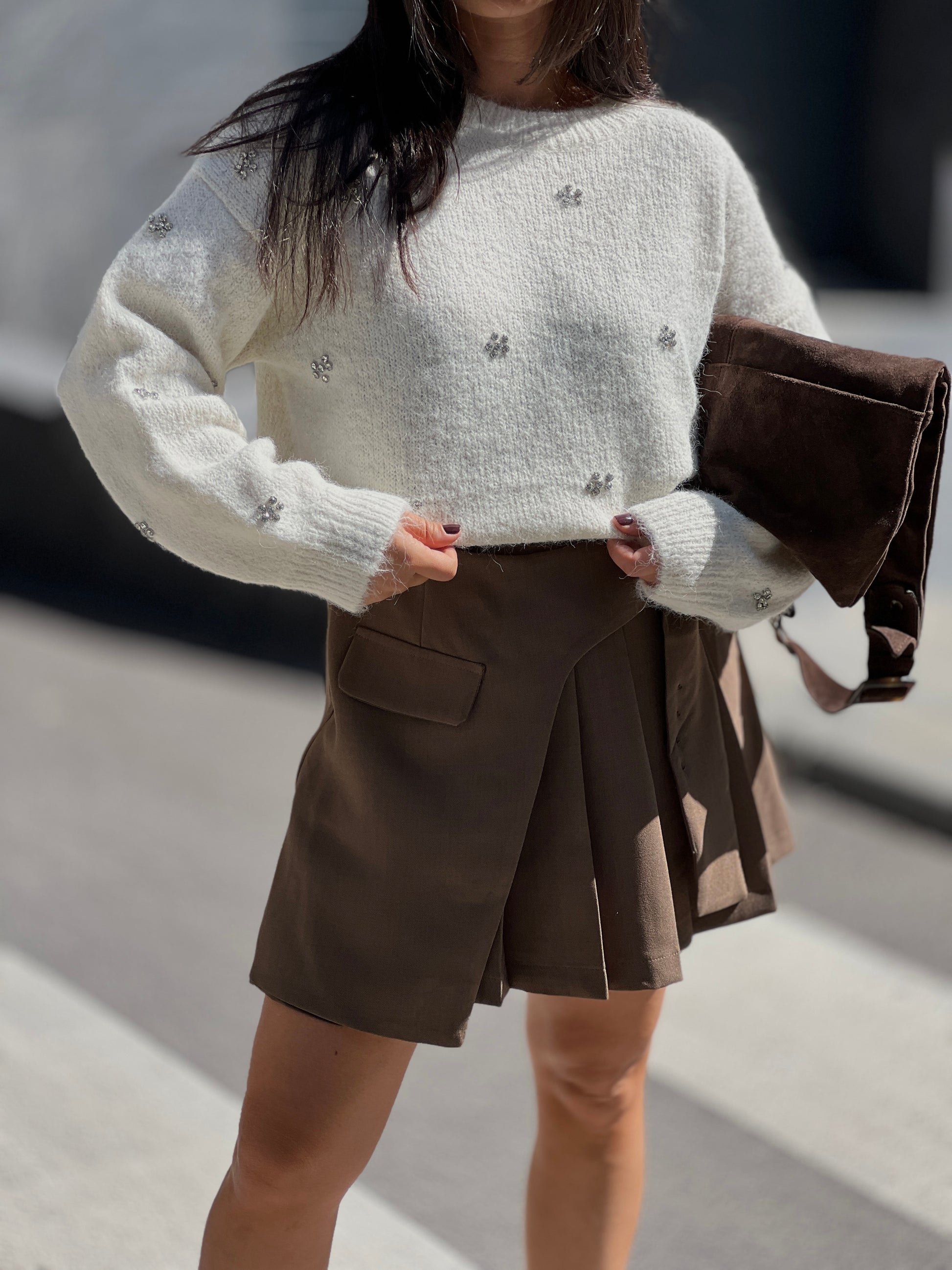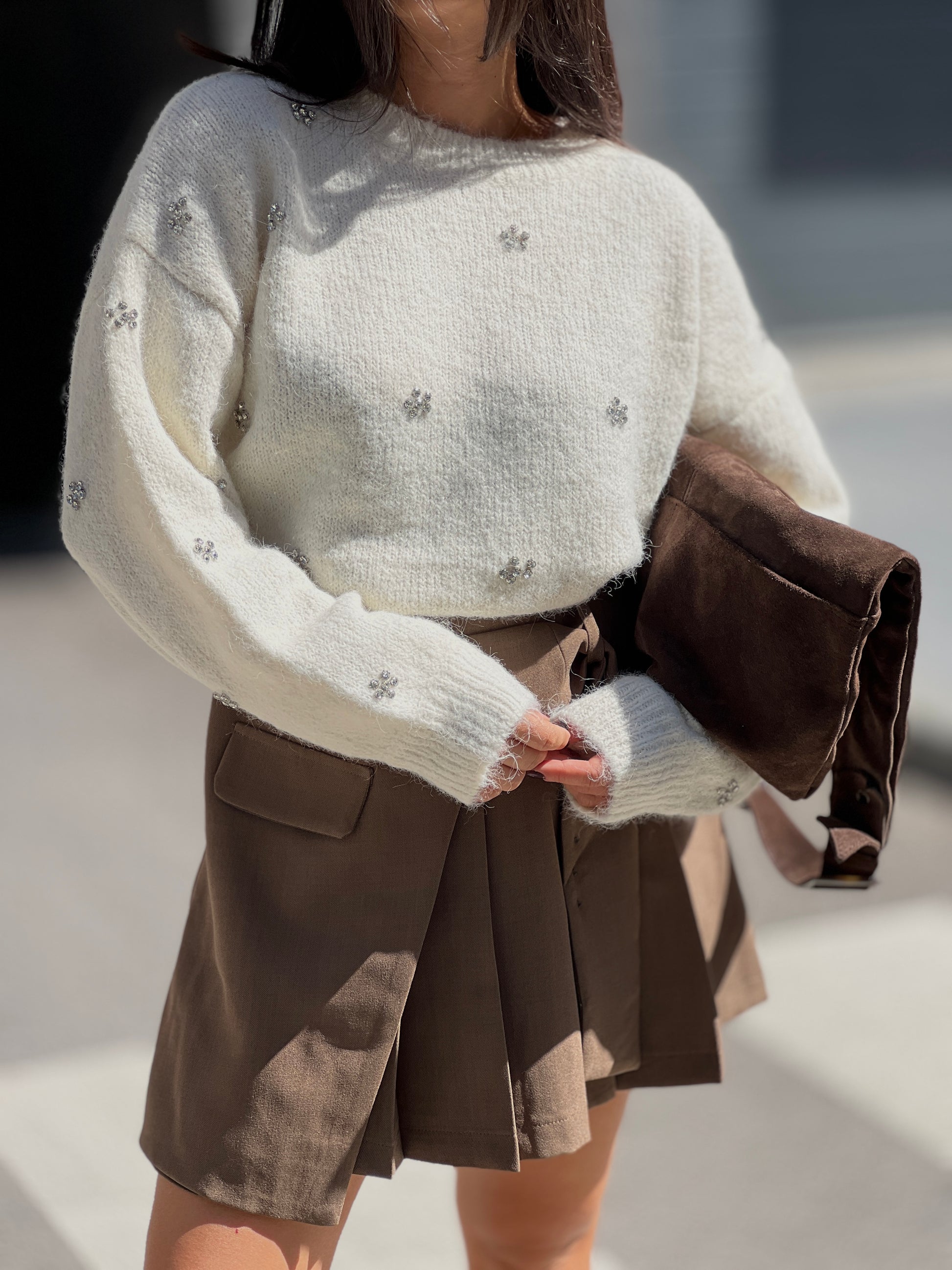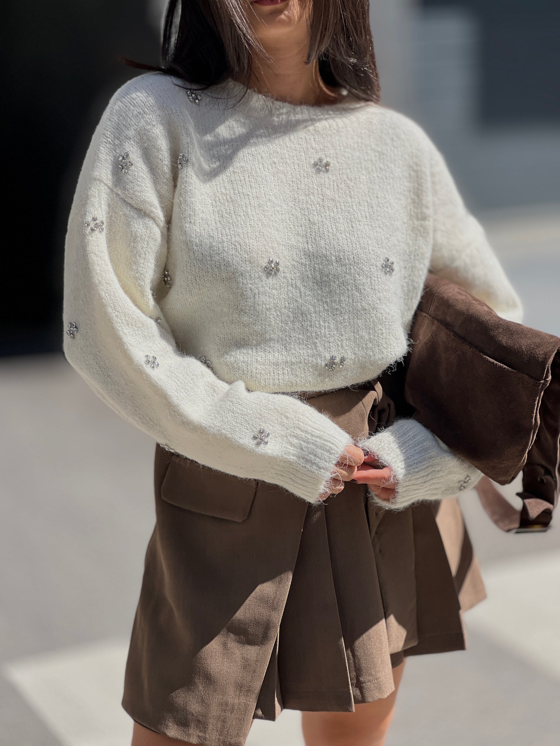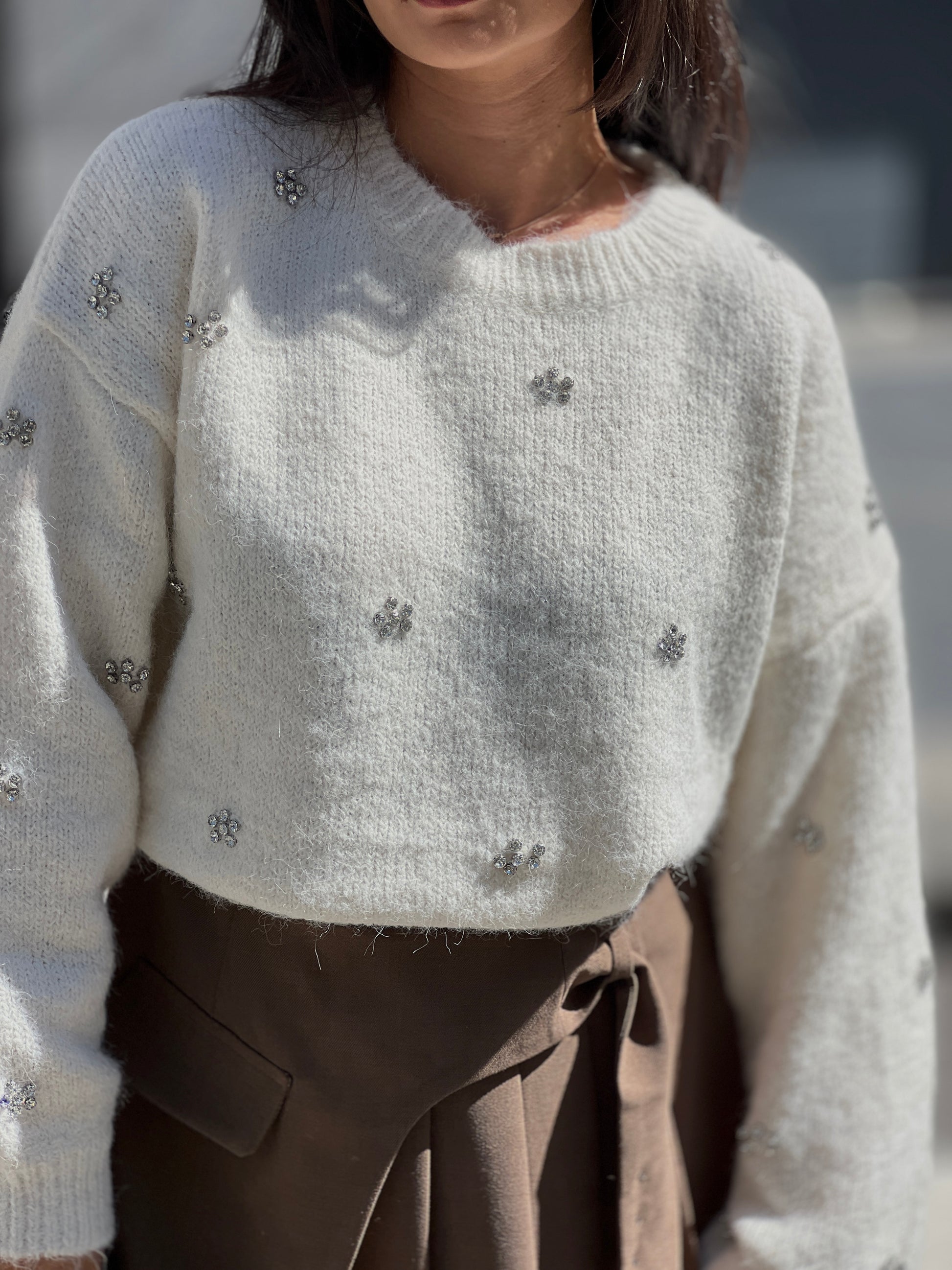 Must-have! Изключително мек и топъл пуловер с красив детайл - нашити камъчета