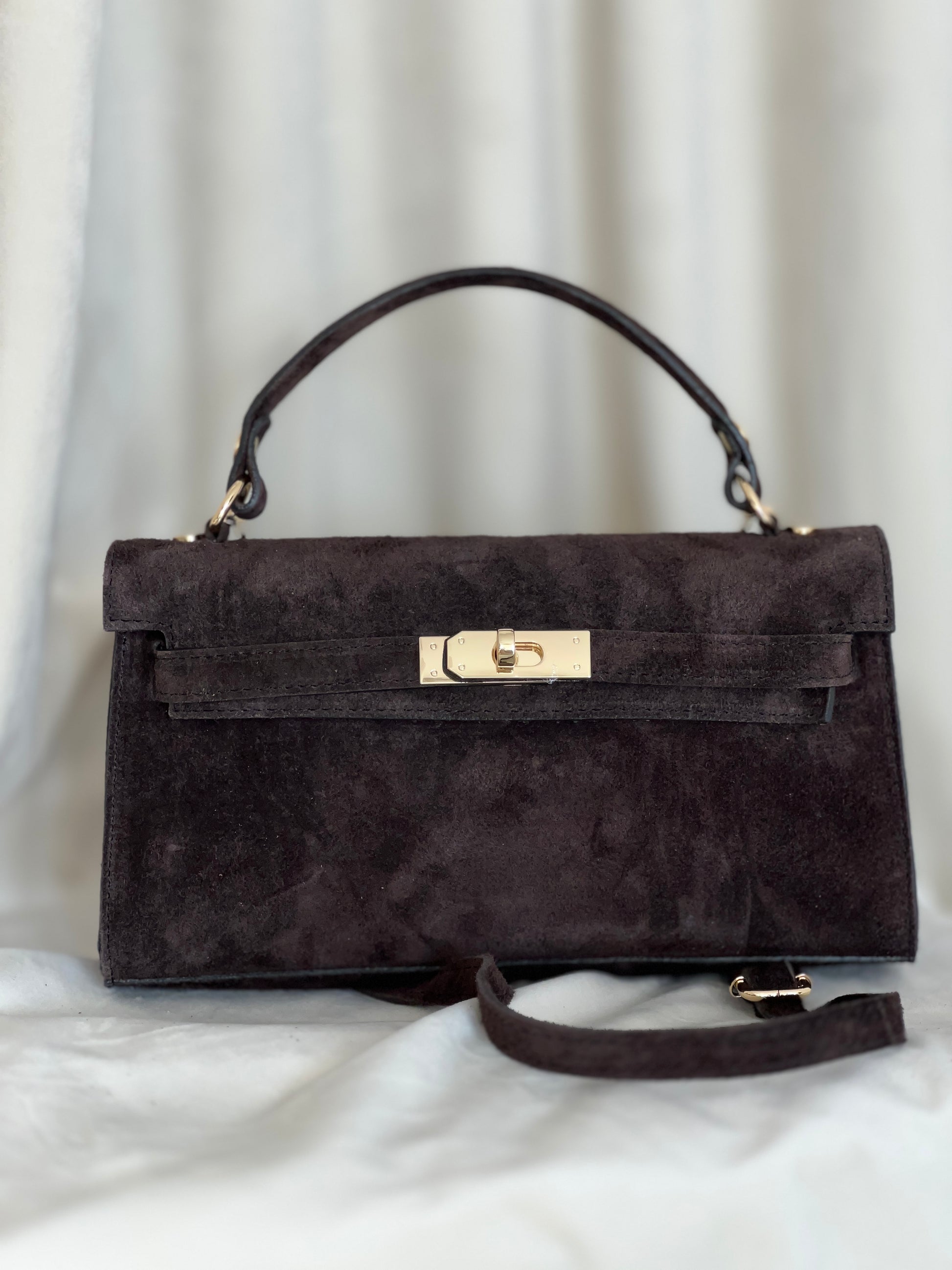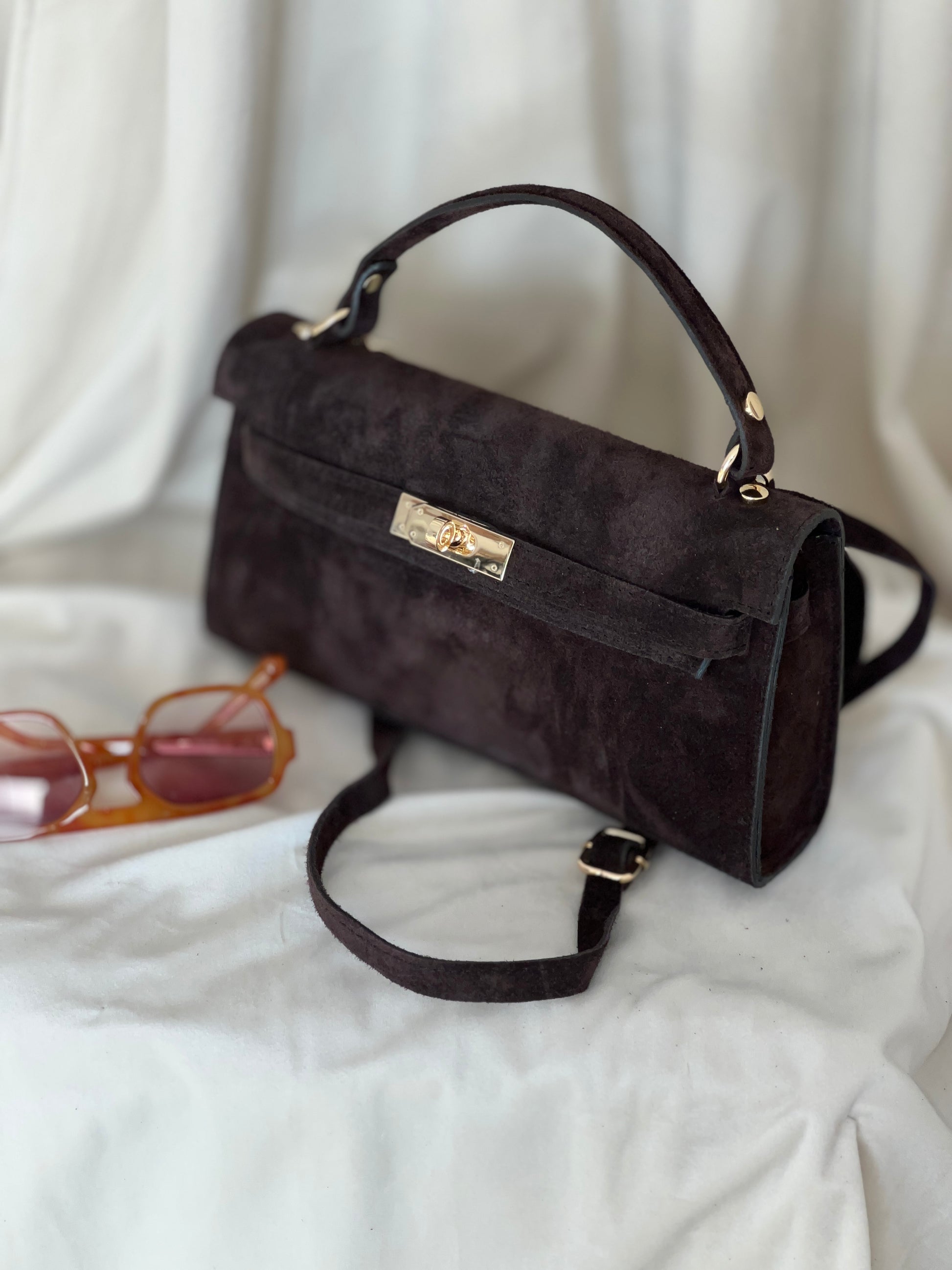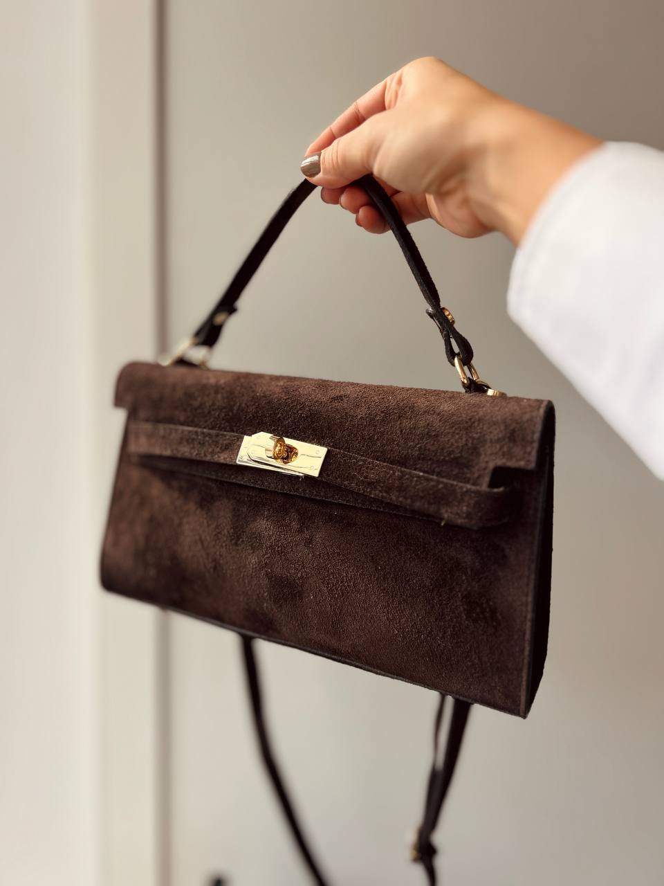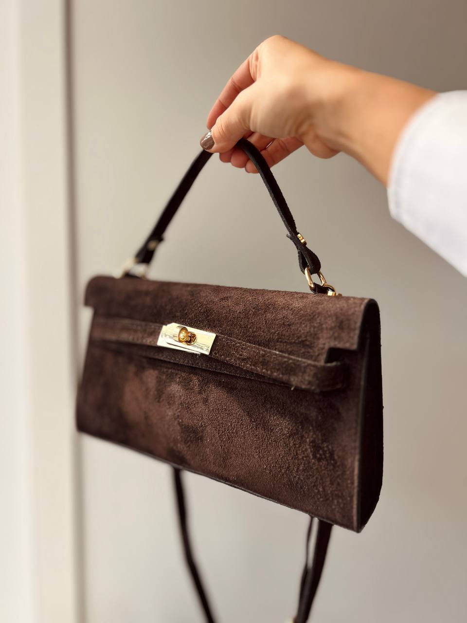 Чанта от естествен велур SELINA COFFEE 🚨* предварителна поръчка*