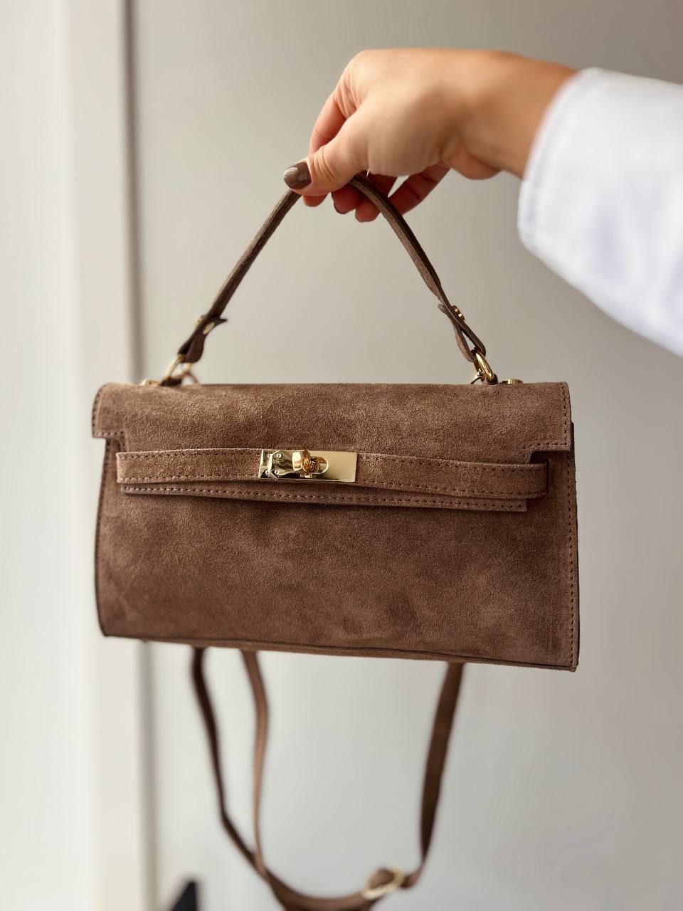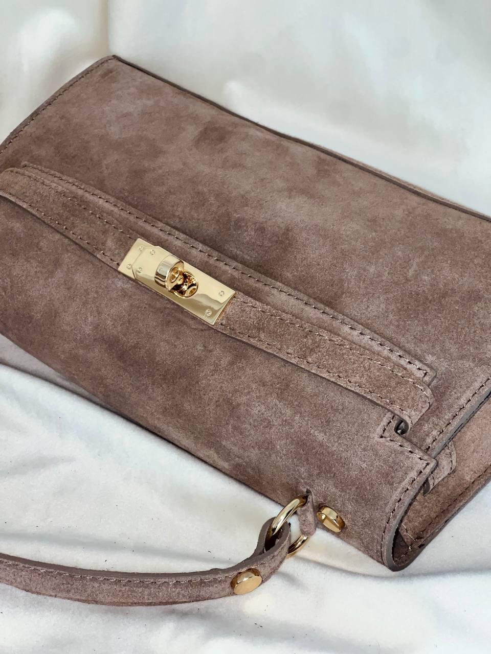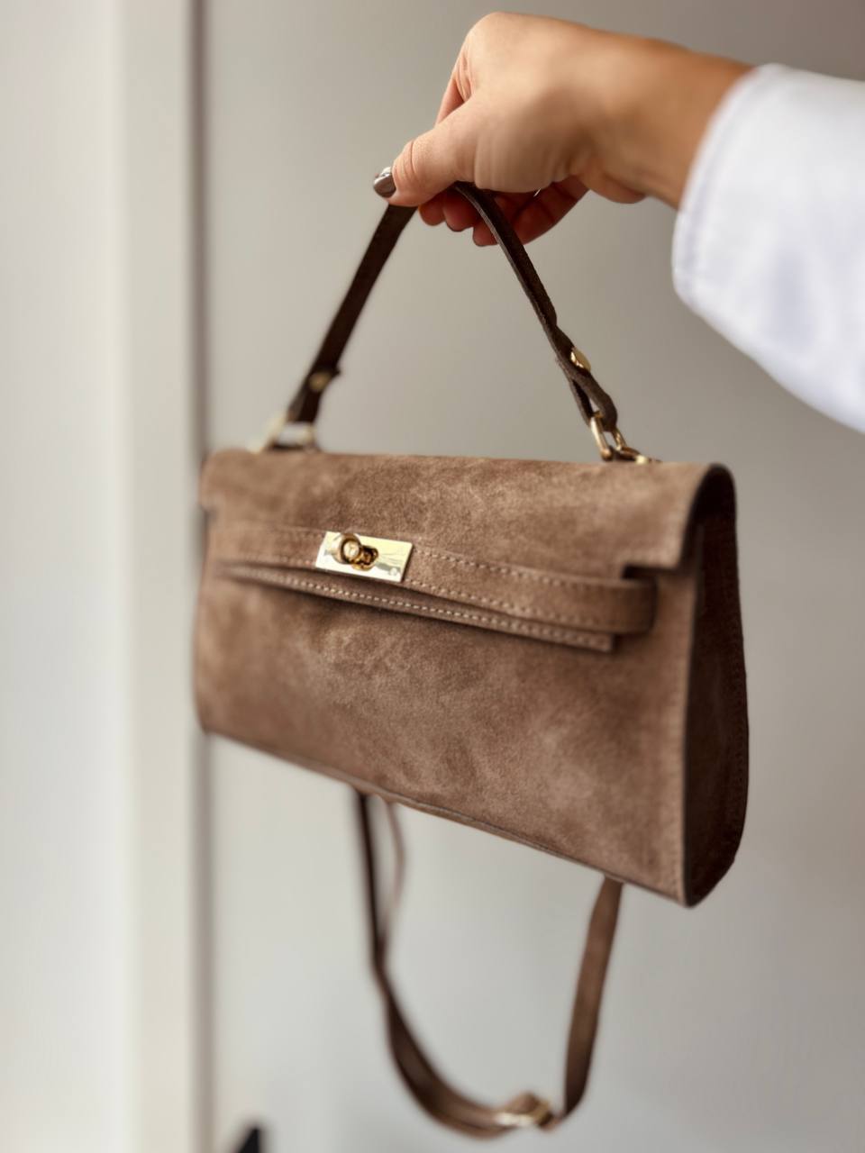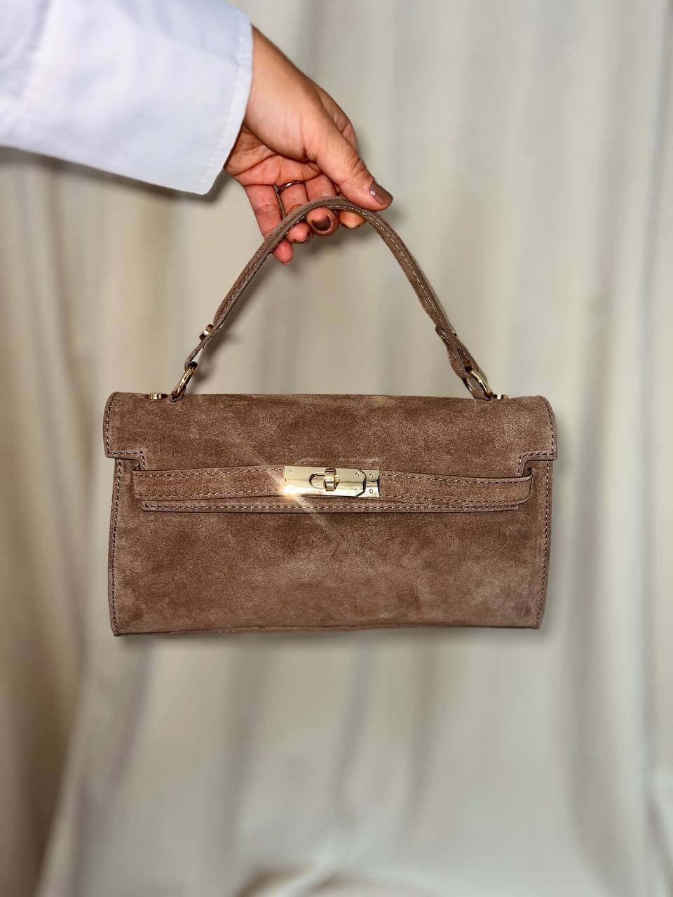 Чанта от естествен велур SELINA SAND 🚨* предварителна поръчка*