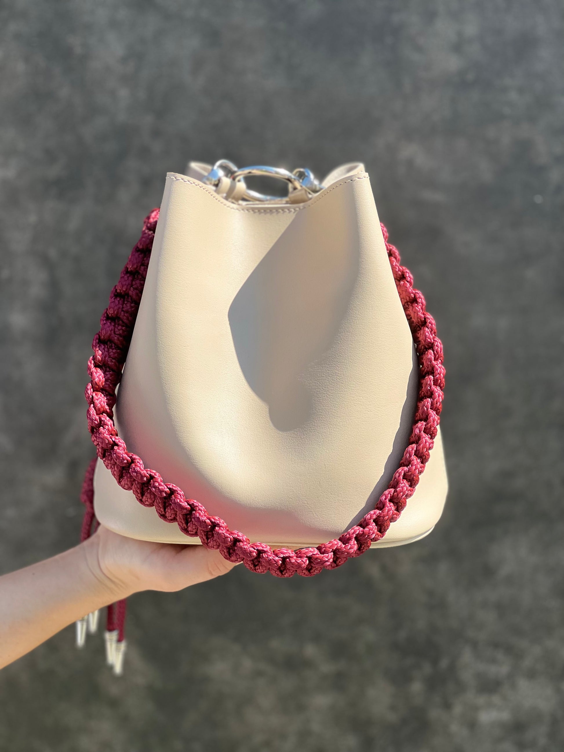 Чанта с ръчно плетена дръжка THE BUCKET / BEIGE AND BURGUNDY